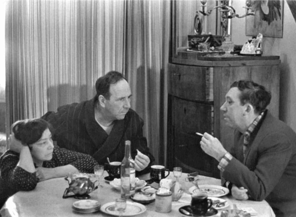 Юрий Никулин в гостях у Ростислава Плятта, 1962 год. Рядом Нина Бутова – актриса театра имени Моссовета, жена Ростислава Плятта.