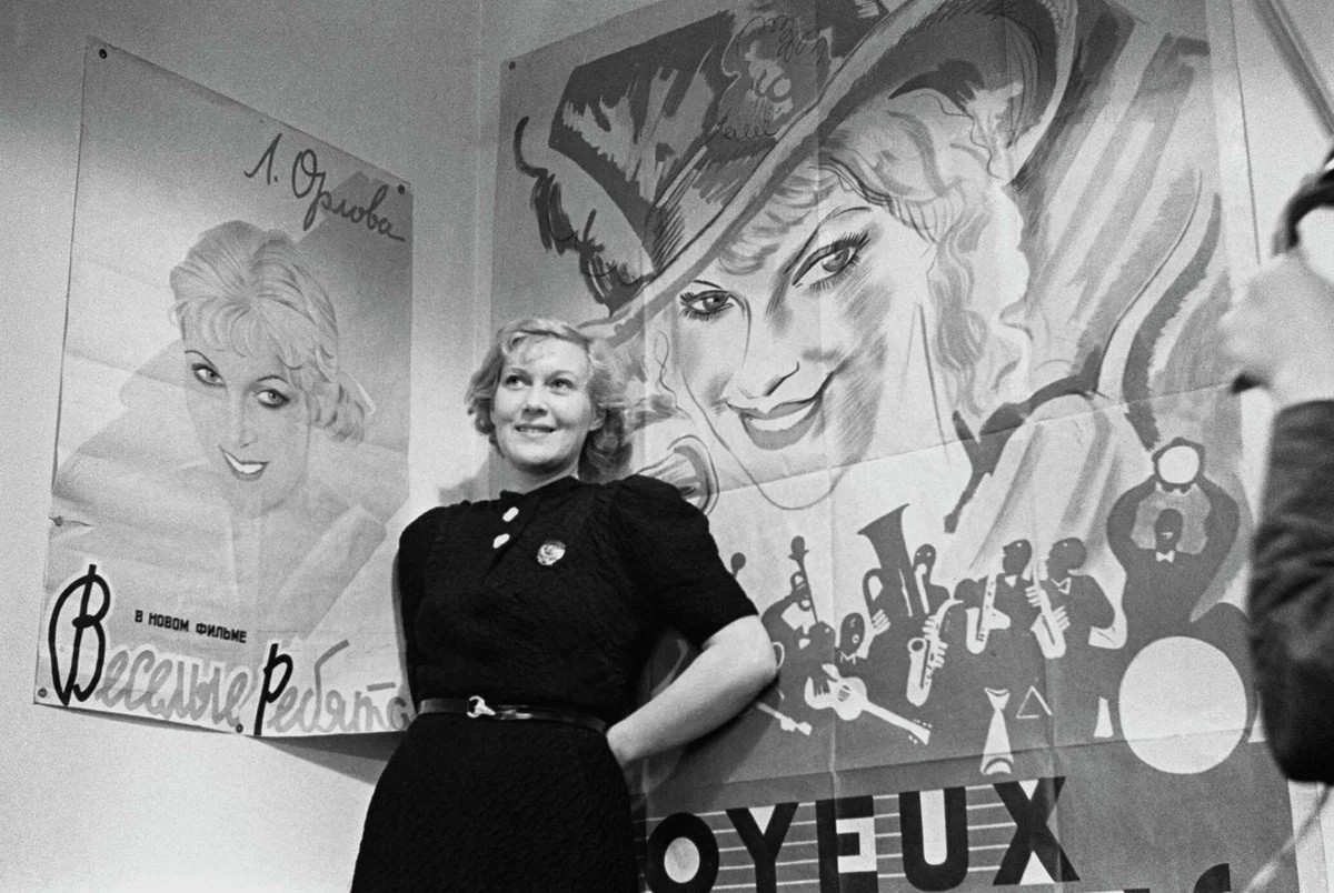 Любовь Орлова у афиши фильма «Весёлые ребята», 1938 год.