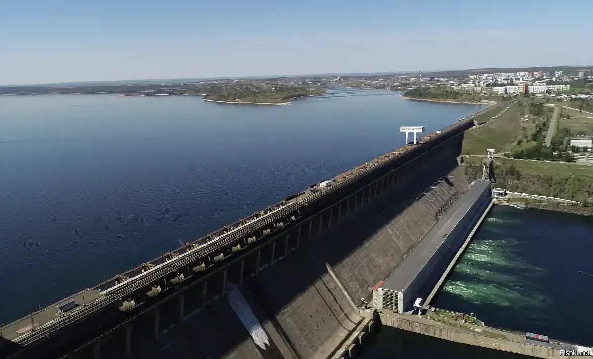 По Братской ГЭС. Сам Братчанин. Ездил по ней тысячи раз. Не совсем понимаю откуда снято. Наверное с правого берега, где сейчас смотровая. Не узнаю эти сопки на снимке - видимо они под водой. Вот фото с правого берега сейчас. Со смотровой и с высоты, чтобы Энергетик видно было за ГЭС.