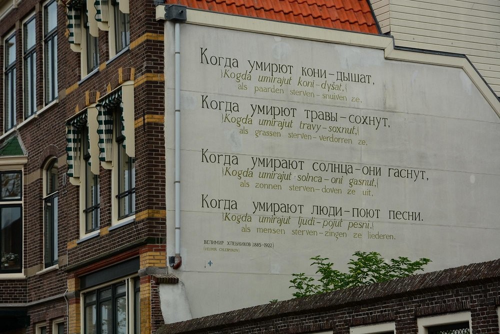 На фасадах зданий по всему городу можно найти более ста поэтических произведений, тщательно выписанных кистью. Здесь живут строки Рембо и Шекспира, Йейтса и Марины Цветаевой, Дилана Томаса и Дерека Уолкотта, а также местных поэтов. Большинство из них звучат на голландском и английском, но несколько стен обращаются к миру на русском, турецком, арабском, китайском, суринамском и других языках.