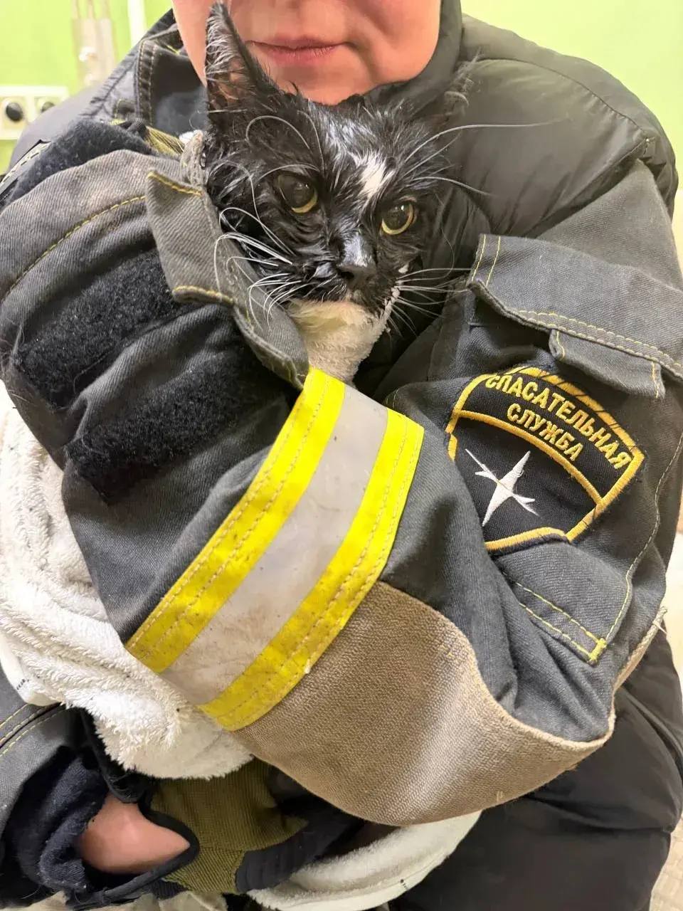 "Испуганный и никогда в жизни ещё не бывший таким чистым, Джой спокойно расположился на руках спасателей. Красавчика подсушили полотенцами. Джой немножечко потрясся, но быстро пришел в норму и даже покушал.