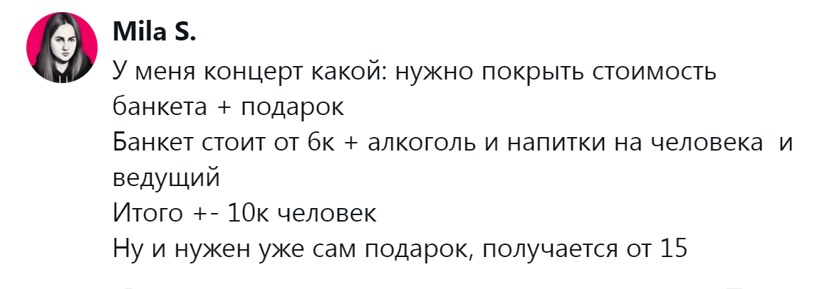 И наоборот - что гости должны нажрать не меньше чем на сумму подарка.