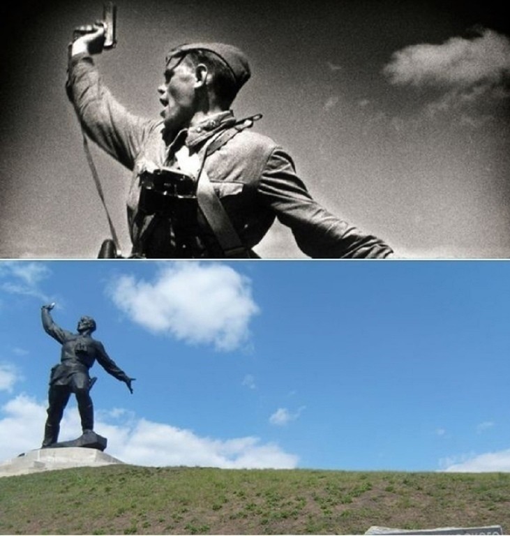 Снимок участвовал в первой Московской выставке, посвященной Великой Отечественной войне, и получил Большую золотую медаль. Он стал известным и был опубликован во многих газетах и журналах по всему миру. Скульптор Иван Чумак, вдохновлённый этой фотографией, работал над созданием памятника герою в течение десяти лет. Высота бронзового монумента составляет одиннадцать метров, и он установлен на предполагаемом месте сражения, где пал младший политрук А.Г. Еременко.
