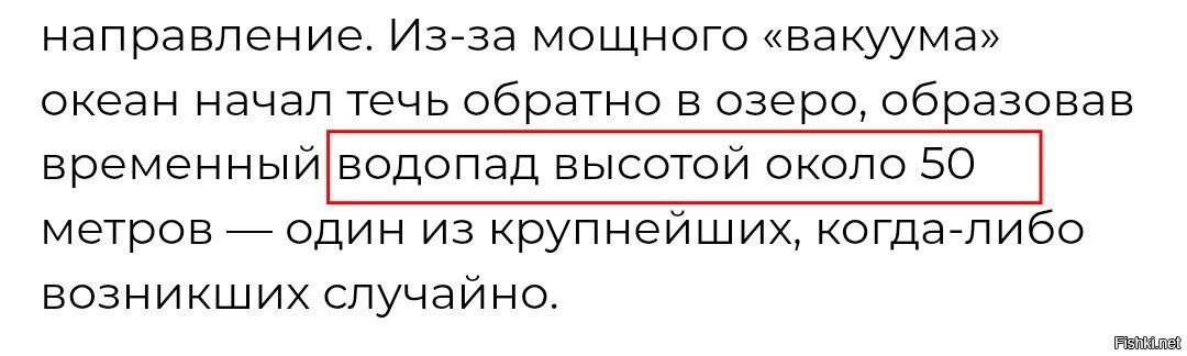 Но дальше стало ещё сюрреалистичнее. Канал, по которому вода обычно стекала из озера в Мексиканский залив, изменил направление. Из-за мощного «вакуума» океан начал течь обратно в озеро, образовав временный водопад высотой около 50 метров — один из крупнейших, когда-либо возникших случайно.