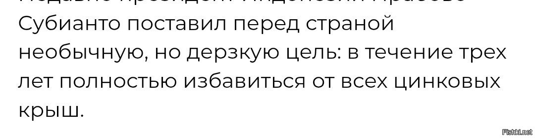 Недавно президент Индонезии Прабово Субианто поставил перед страной необычную, но дерзкую цель: в течение трех лет полностью избавиться от всех цинковых крыш.