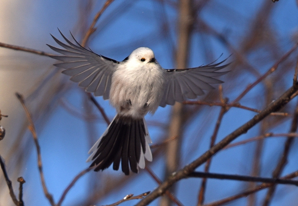 Эта крошечная птичка по размеру меньше воробушка: вес — 6-10 г максимальная длина — 16 см. Но каждый сантиметр — концентрация очарования. Только посмотрите на округлые формы! На эти глазки-бусинки! В XIX веке длиннохвостая синица пользовалась у любителей пернатых большой популярностью и считалась самой красивой среди мелких птиц, за что получила название аполлоновка. За преимущественно светлый окрас синичку еще называют снежной. А за форму пушистого черпачка с длинной ручкой — ополовником. В общем, названий — на любой вкус.