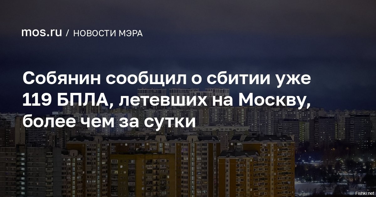 Собянин сообщил о сбитии уже 119 дронов, летевших на Москву более чем за сутки