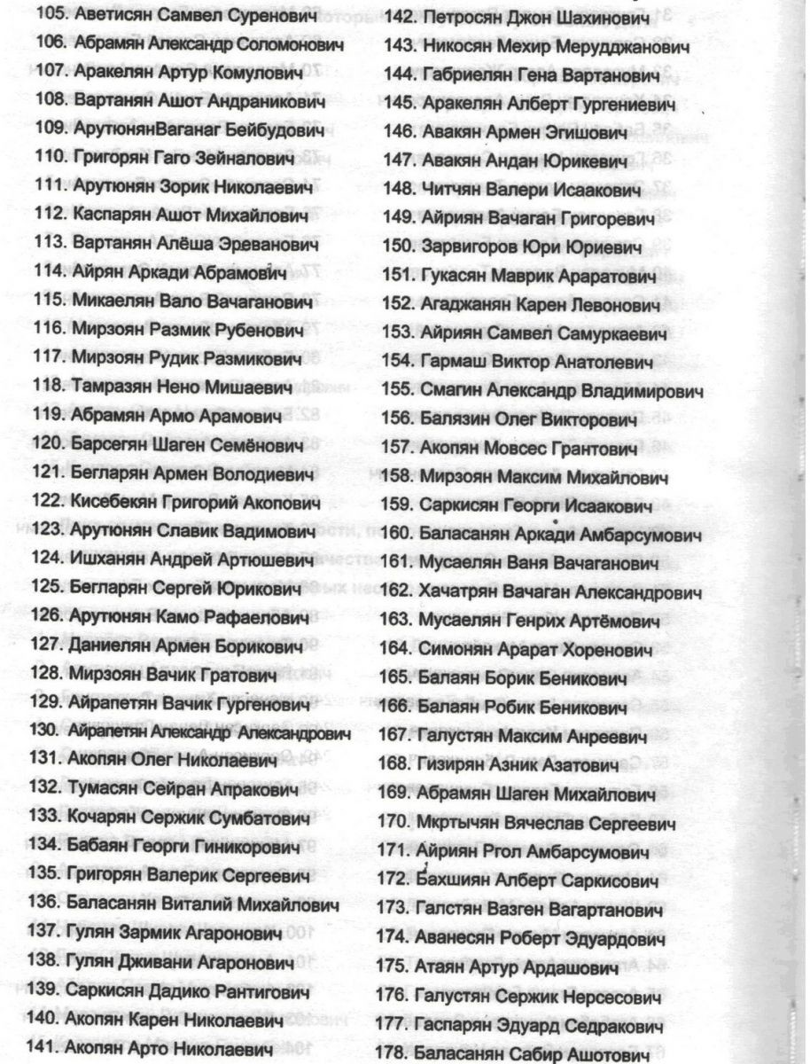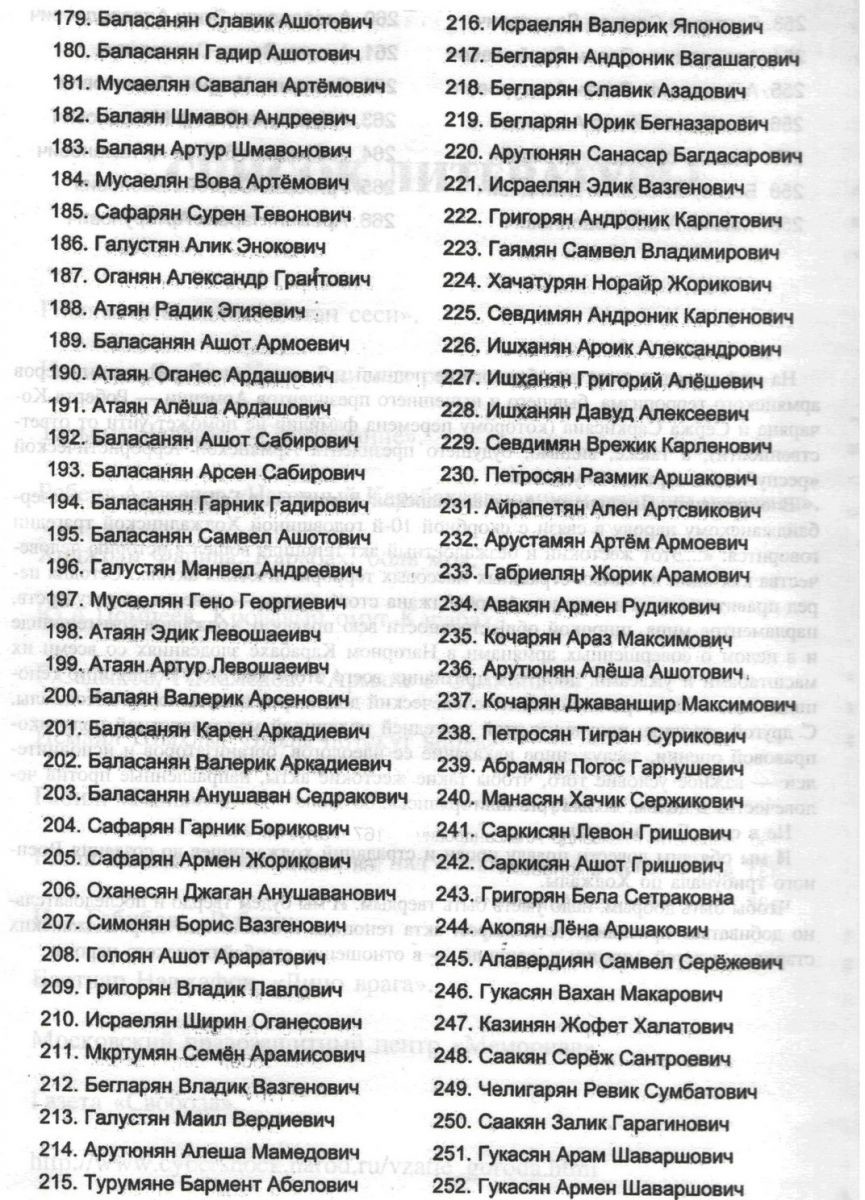 Люди совершившие это известны пофамильно. Вот список людей чья вина в участии в зверских убийствах и чудовищных издевательствах над азербайджанскими гражданами, преступлениях на почве этнической и расовой ненависти доказана.
