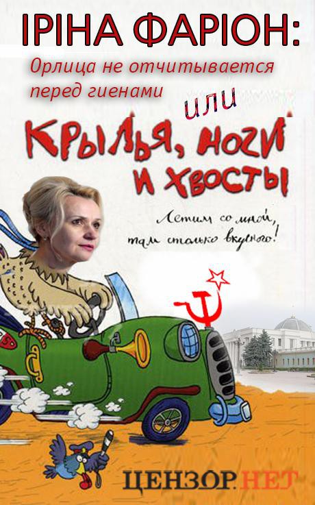 На вопрос журналистки одного из телеканалов, как она прокомментирует публикацию документов, подтверждающих ее членство в коммунистической партии, Фарион натужно засмеялась и сказала: "Никак. Орлица не отчитывается перед гиенами".