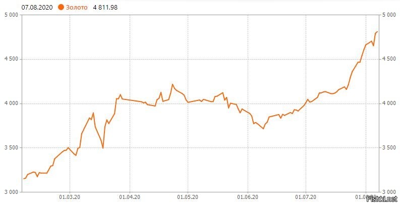 А так как доходных инструментов для инвестирования, тем более в таком масштабе, на рынке больше нет, все естественно вспомнили про золото. И совпадение ускорения взлета его цены с ростом темпов печати фантиков тут абсолютно не случайно. Американский долларовый пузырь начал явно «свистеть».