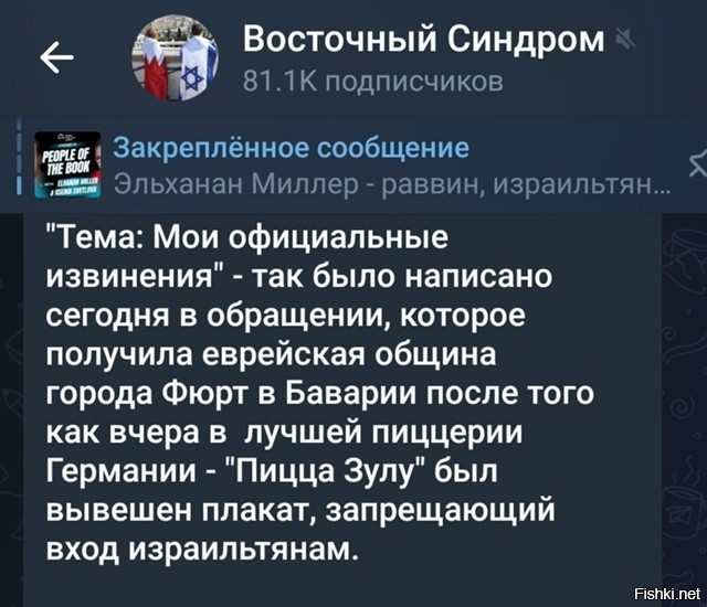 Жил-был мужик, которому не понравилась израильская агрессия. И попросил израильских граждан не посещать его общепит. А потом бахнул этадругинчику, и немедля извинился