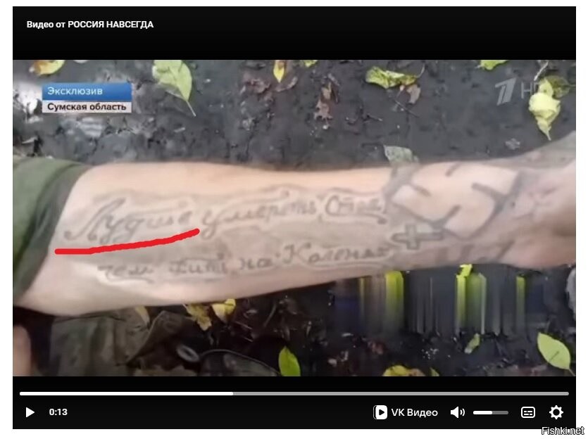 Тем временем солдат ВСУ с татуировкой в виде свастики и надписью «Лучше умереть стоя, чем жить на коленях» встал на колени и просил русских морпехов взять его в плен