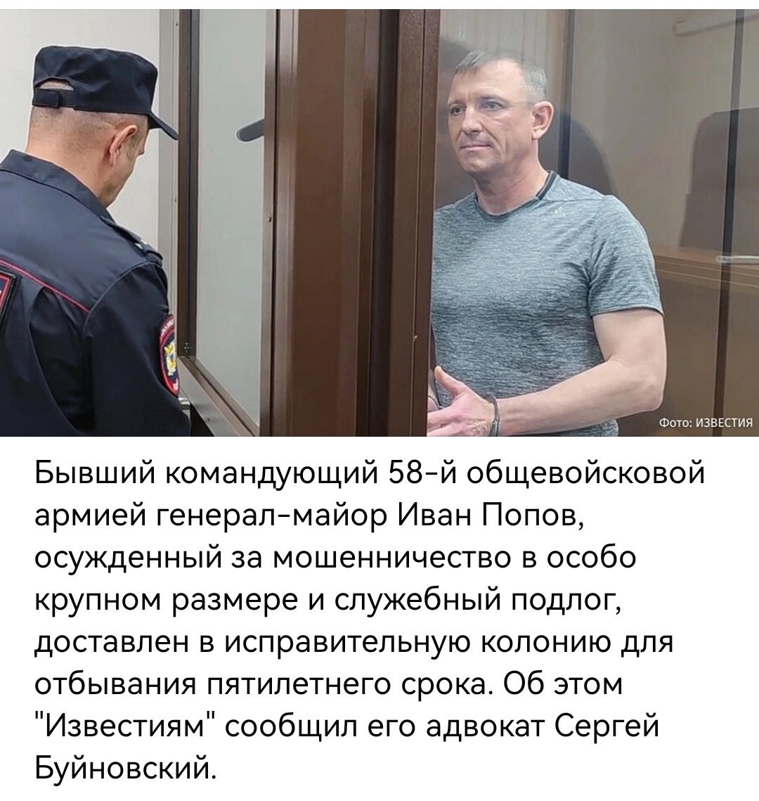 Приговор Тамбовского гарнизонного военного суда, вынесенный в конце июля, был оставлен в силе Вторым Западным окружным военным судом. Суд признал Попова виновным в совершении преступлений и, помимо лишения свободы, лишил его воинского звания генерал-майора. Срок отбывания наказания исчисляется до конца мая 2029 года.