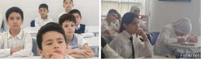 На фотографиях ученики двух школ, одна расположена в Подмосковье, другая в Душанбе, попробуйте определить, какая где?