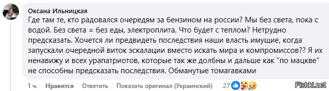Между тем в Киеве начались стихийные протесты из-за отсутствия воды и света. Жители района Борщаговка перекрыли Соборную улицу. Скандально известная нардеп Марьяна Безуглая предупредила киевлян, что неприятности только начинаются, и призвала их на зиму уехать из столицы Украины.