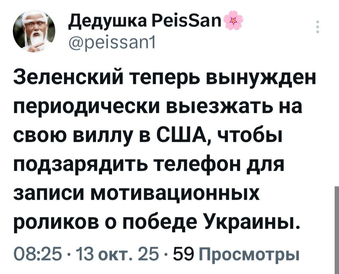 Зеленскому и его окружению плевать на свою страну, у них хоть света не будет во всей Украине им плевать, у них у всех дома зарубежном, и когда надо будет, они просто уедут и все.