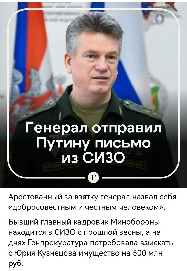 Поэтому генерал решил написать письмо президенту. В нем он утверждает, что невиновен, а все деньги выплачивались ему «законным образом за выполнение служебных задач».