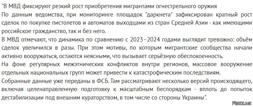 В МВД отмечают, что динамика по сравнению с 2023–2024 годами выглядит тревожно: объём сделок увеличился в разы. При этом мотивы, по которым мигрантские сообщества начали активно вооружаться, остаются неясными, что вызывает серьёзную обеспокоенность.