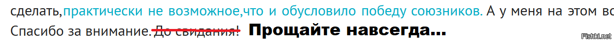 Жду когда же наконец увижу "А у меня все. ПРОЩАЙТЕ!"