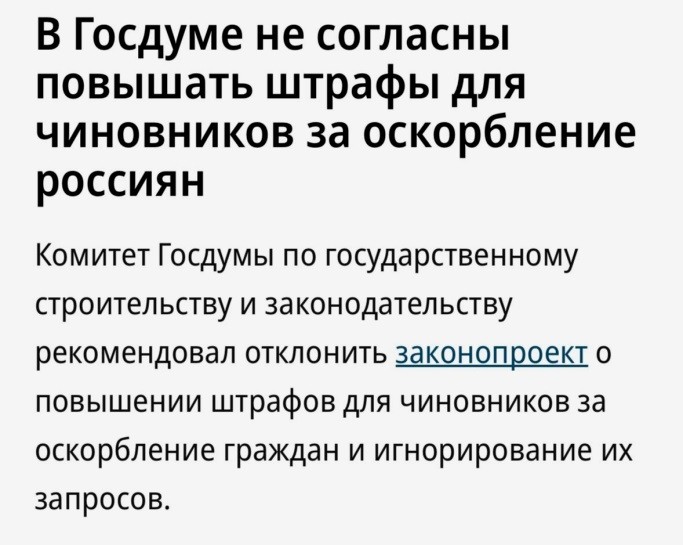 Парламентарии отмечали, что штрафы для граждан за последние годы выросли, тогда как для чиновников остались прежними, однако большинство высказалось против инициативы.