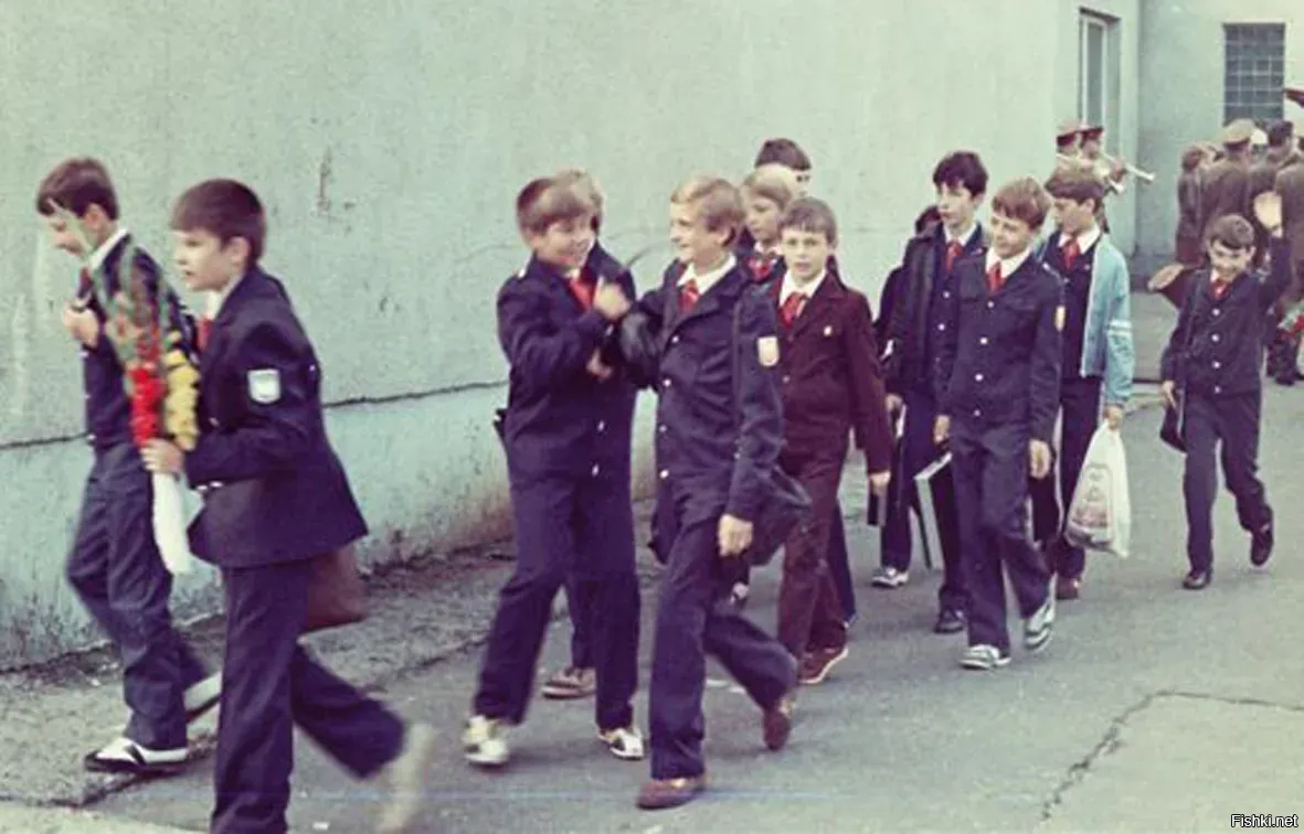 К 1977 году были переодеты в новую все школьники-мальчики.