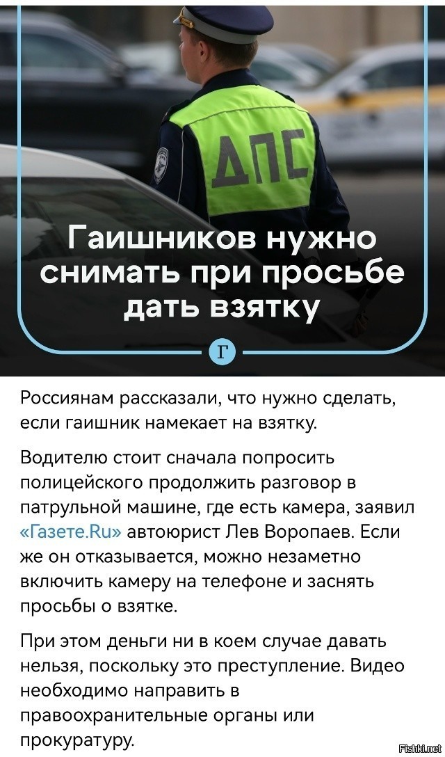 То есть гаишнику делать тоже самое, так как по статистики 80% случаев инициатором взятки Гаишникам выступают сами водители?