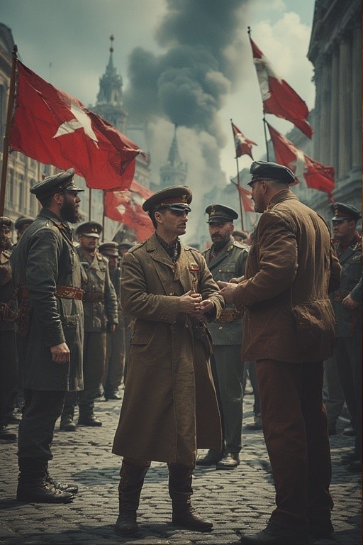 А в октябре 1917 года срок полномочий Государственной Думы истекал. Правда, на следующий день, должен был начать работу Съезд Советов. И отсюда и исходит фраза Ленина, что вчера было рано, Дума ещё полномочна, завтра будет поздно, начнёт работу Съезд, и свергать Временное правительство нужно ночью. Ну а потом Съезд и назначил четвёртое Временное правительство, а оно так и называлось Временное Советское правительство, обязав то выполнить волю императора Михаила Второго и произвести выборы в Учредительное Собрание. Для определения государственного устройства России. В то время как ещё в сентябре 1917 года, глава третьего, не легитимного, само назначенного Временного правительства, объявил Россию республикой. По сути, Съезд Советов отменил это решение Керенского и юридически вернулся к решениям императора Михаила Второго. Что и позволило обвинить, сторонникам власти военной диктатуры, большевиков, и Советы, в контрреволюции. И гражданская война вспыхнула вновь. По стране начались выступления против власти Советов. Правда, уже к маю месяцу 1918 года, активная фаза Малой Гражданской Войны, завершилась победой коалиции левых сил. Ведь туда, помимо большевиков, вполне официально входили левые эсеры и анархисты. А ведь даже уже стоял вопрос о самороспуске, самой значительной вооружённой группировки противостоящих большевикам сил, банды мятежников и коллаборационистов, под командованием Деникина и Алексеева. А как ещё назвать людей поднимающий вооружённый мятеж против легитимного правительства, в период, когда страна ведёт войну с внешним врагом, только мятежниками и прогерманскими шпионами и коллаборационистами.