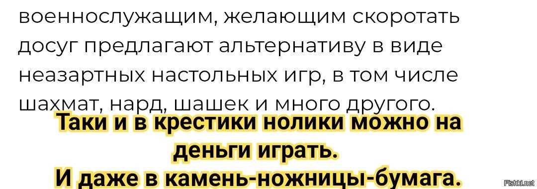 Само собой подобный запрет есть почти во всех армиях, однако в ЦАХАЛ за азартные игры наказывают особенно жестко. Впрочем, военнослужащим, желающим скоротать досуг предлагают альтернативу в виде неазартных настольных игр, в том числе шахмат, нард, шашек и много другого.