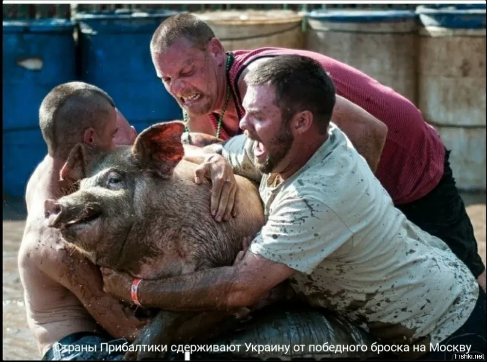 Вы посмотрите на мужика сверху и довольное рыло свынни.
