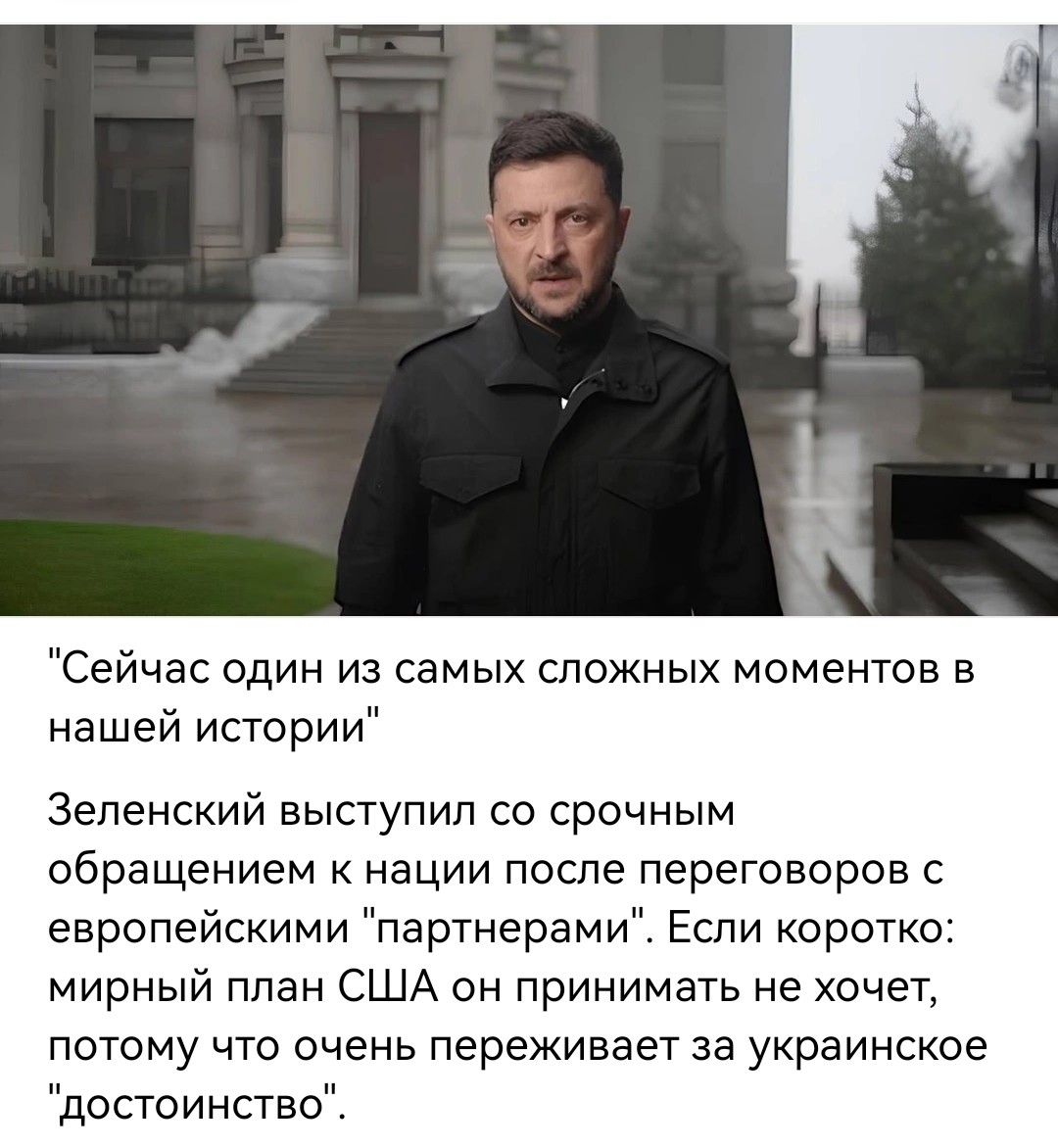 Украина может оказаться перед очень сложным выбором — потеря достоинства или угроза потери ключевого партнера. Или сложные 28 пунктов, или очень сложная зима.