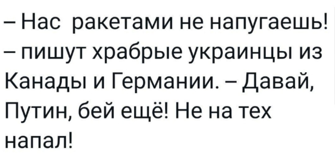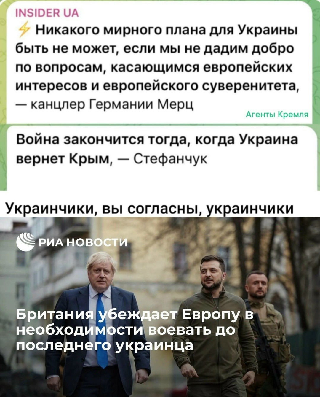 Пусть ещё "помаринуются" и мирный план ещё сократится до двух пунктов - денацификация и демилитаризация всей Украины