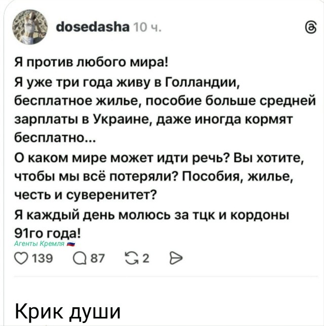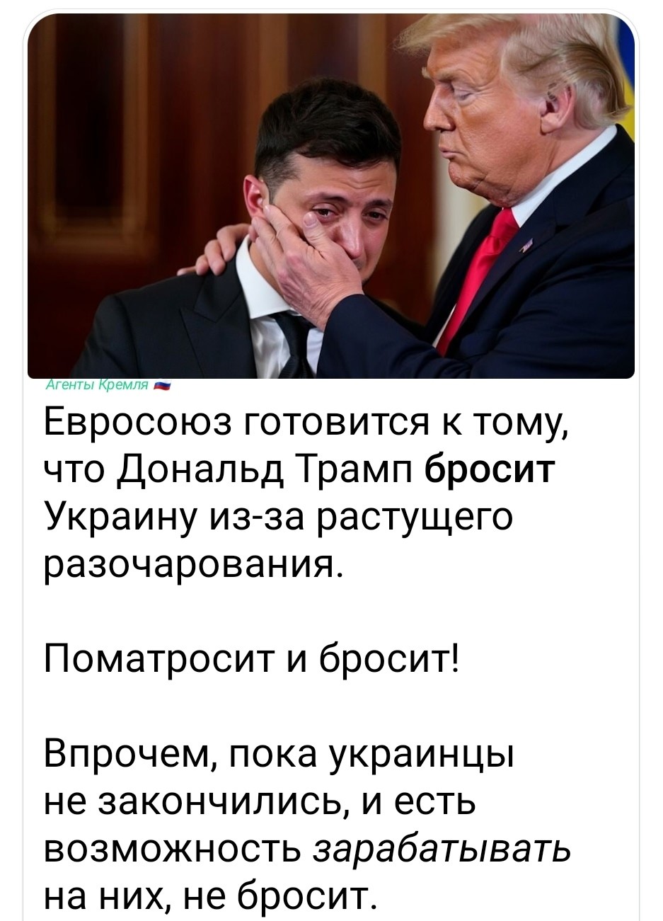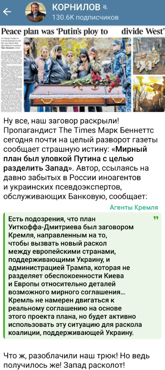 Вот честно, они там что, не понимают всю бессмысленность своей суеты? 28 пунктов, 19, какая нахрен разница? Путин предлагает только 3 (денацификация, демилитаризация, отказ от НАТО). Они могут хоть 100500 пунктов напридумывать, но без этих трёх, никакого договора не будет, а с ними, все другие пункты бессмыслены. И покер кто их придумывает, Европа, Америка, да хоть Буркина-Фассо. В данном конфликте, их интересы вообще никого не ипут.