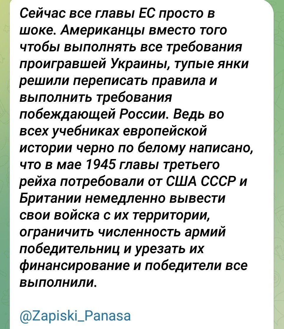 Правда при этом не исключено, что в ответ Венесуэла внезапно откроет на своей территории месторождение "Гераней" и каких-нибудь доисторических гиперзвуковых ракет, которые по чистой случайности полетят по американским НПЗ на берегу Мексиканского залива. Примерно по тому же принципу, как сейчас Киевская банда выпускает свои родные "Хаймарсы" по российским НПЗ.
