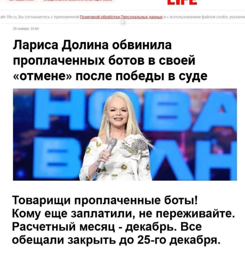 Народную артистку России Ларису Долину могут вырезать из музыкального фильма «Невероятные приключения Шурика». Как стало известно «Абзацу», причина – в негативе вокруг имени народной артистки из-за «квартирного скандала».