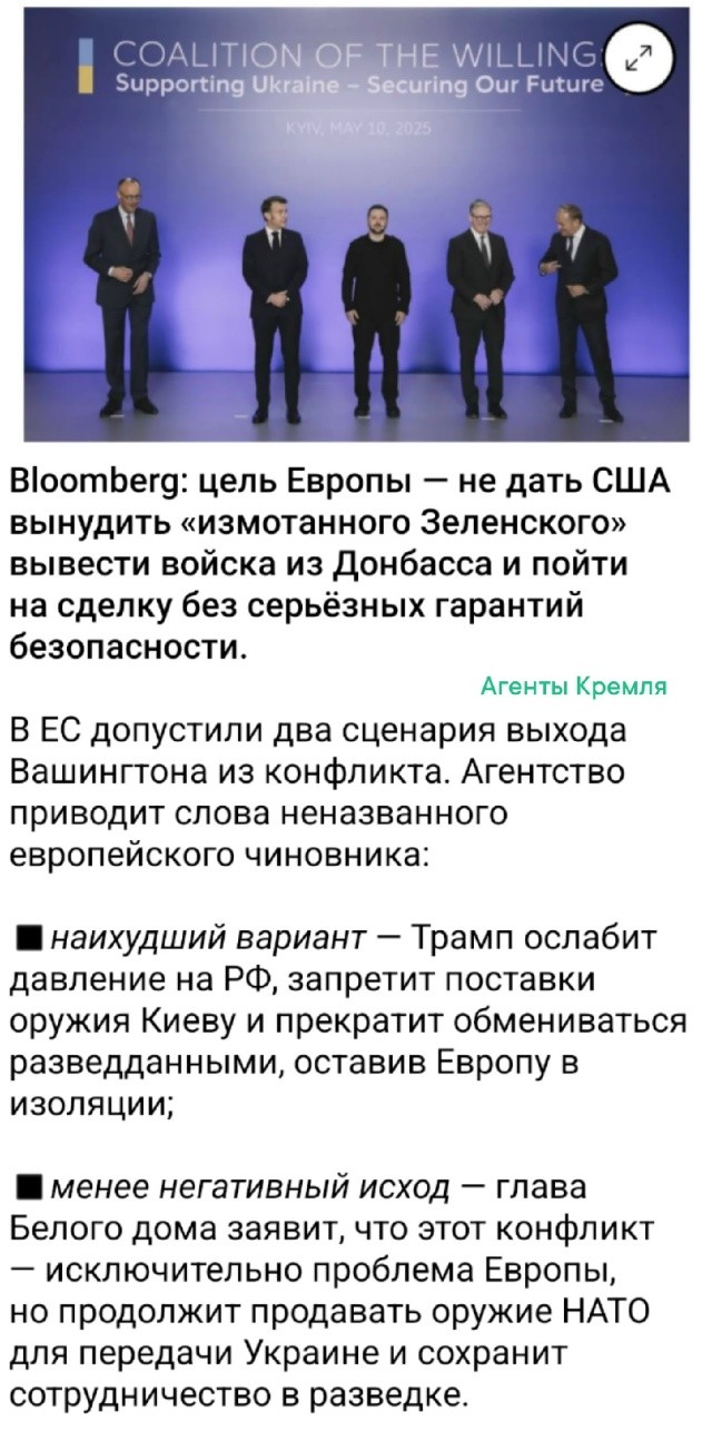 И даже Киев разочарован призывами Каллас продолжать боевые действия, не имея ни реалистичного плана, ни требуемой для этого финансовой поддержки".