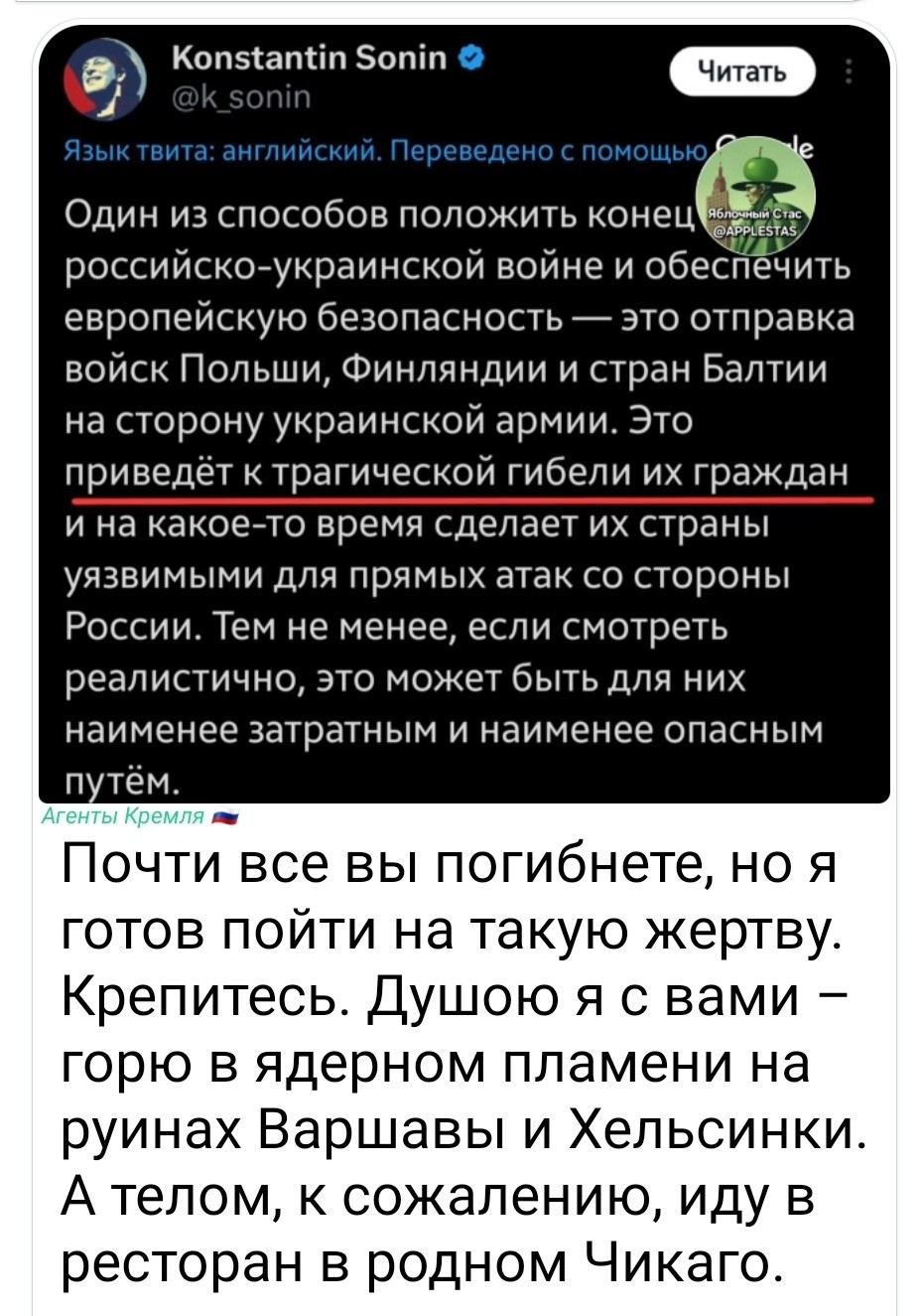 И начинает раскладывать по полочкам. Довольно интересно. Ему нравится Россия. Но пендостан для него всегда на первом месте. И семья у него нормальная, жена-дети. В смысле жена-женщина и дети от неё. Короче, посмотрел, интересно. С намёком на продолжение.