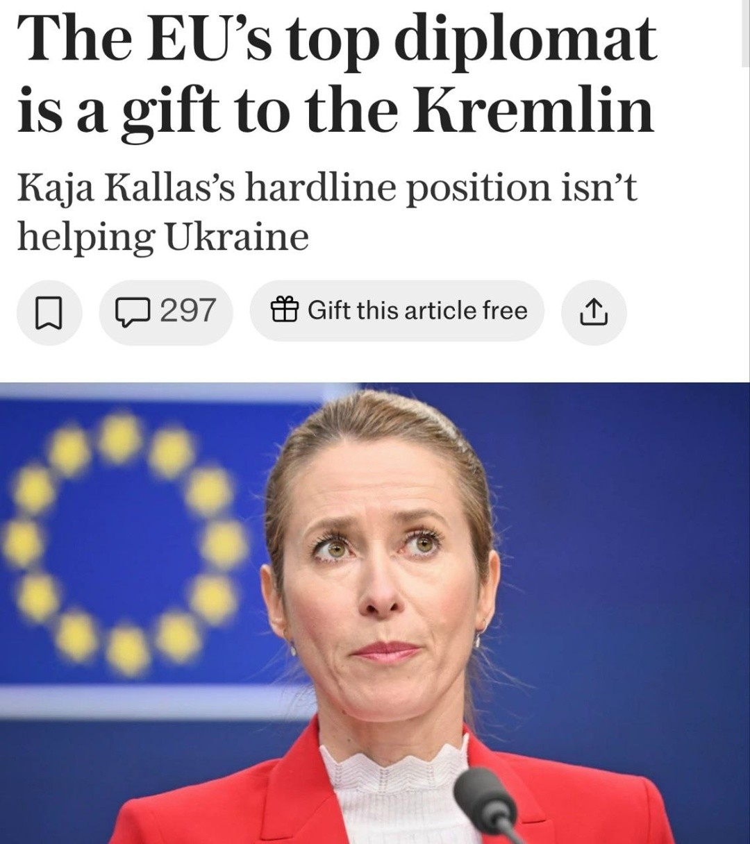 "Упорный отказ Каллас от переговоров с Путиным фактически исключил ЕС из процесса мирного урегулирования по Украине, позволив занять России более выгодную позицию на переговорах. Даже американские чиновники раздражены радикализацией внешней политики ЕС, назвав этот процесс "эстонизацией".