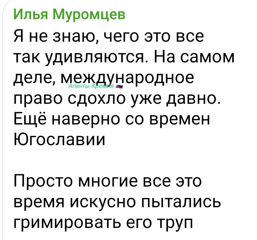 "Наше послание России очень простое, и я произнесу его на русском языке, поскольку вы утверждали, что на Украине этот язык запрещен или подвергается дискриминации. Всё, ребятушки, приплыли, сушите вёсла и плетите лапти".