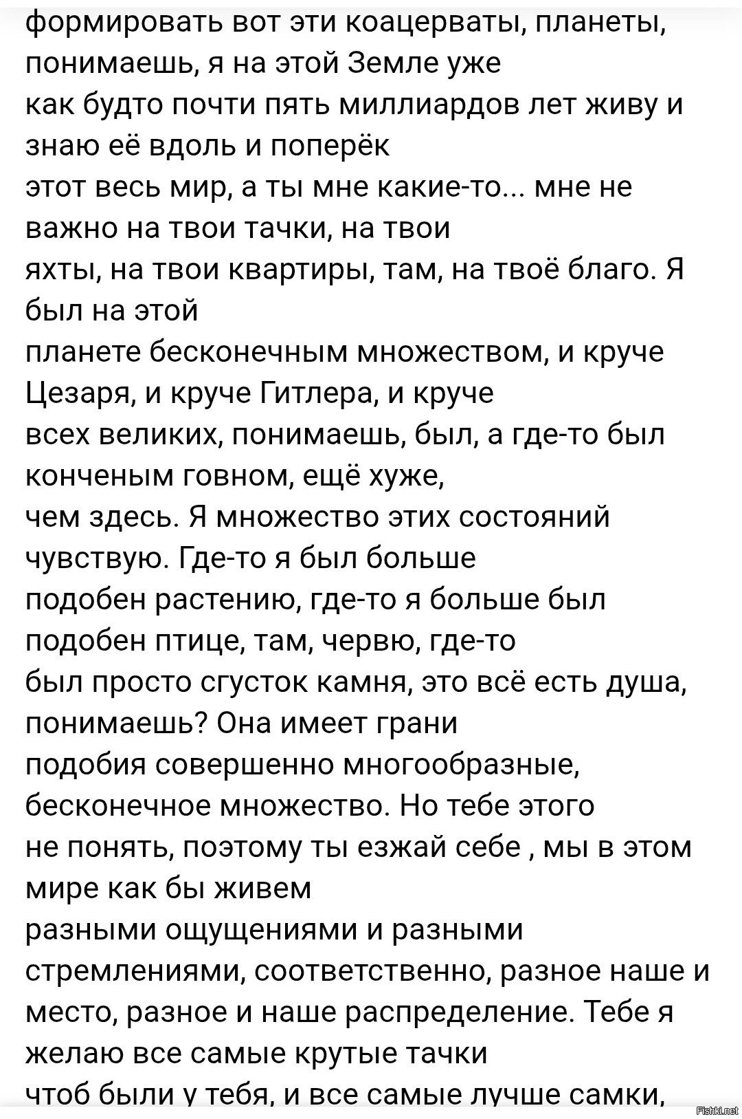 А если кратко: С помощью фильмов, музыки и СМИ Людей убеждают бухать и жить в человейниках. Банки продают квартиры в ипотеку. После покупки квартиры людей доят с помощью ипотечных платежей и ЖКХ. Затем в городе строят супермаркеты и аптеки. Люди едят паршивую еду, от еды, алкоголя и табака заболевают, их лечат таблетками. Людей убеждают мечтать об автомобиле, который тоже делают они. Авто берется в кредит. Ездит на их бензине. Всё принадлежит им. Человека полностью встраивают в доильный аппарат где на выходе получается измордованный труп. Периодически теневые устраивают революции, войны и голод. Разрушенной стране дают кредит на восстановление, под залог суверенитета.