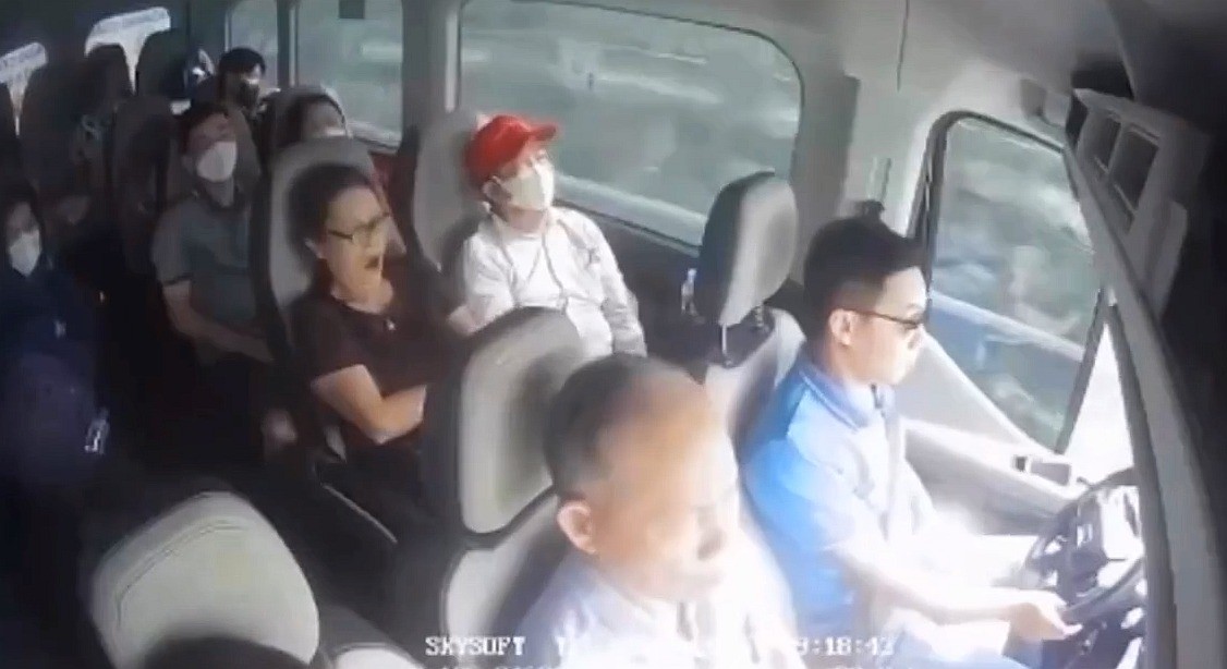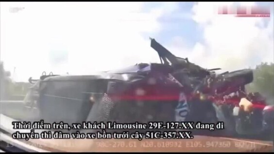 Видео из Вьетнама. В аварии участвовали четыре автомобиля: пикап, микроавтобус, 30-местный пассажирский автобус и водовоз, использовавшийся для полива придорожных деревьев. Микроавтобус получил серьёзные повреждения и перевернулся, а пассажирский автобус вылетел с шоссе. Восемь человек получили ранения, один из них в тяжёлом состоянии. 3 ракурса.