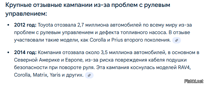 На самом деле любой ГУР может подклинивать, если низки уровень жидкости. И ещё если придираться - к тойоте тоже будет дохренища вопросов. Просто там это всё решается отзывной кампанией. Тойота и из-за рулевого, и из-за тормозов отзывные делала и не раз, и не два. Вот по рулевому: