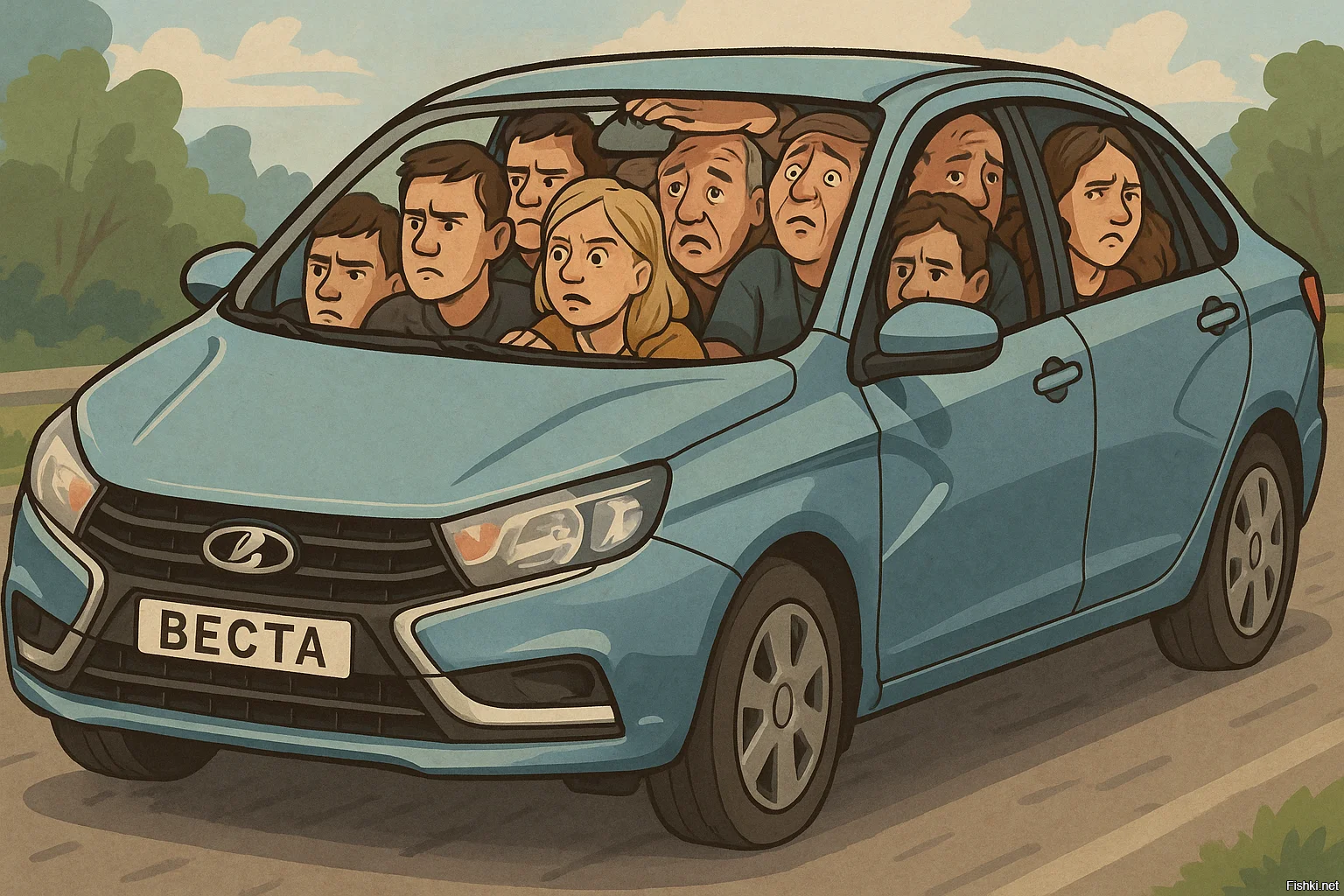 они там просто прекрасно помещаются! довоенная Веста - отличный авто! .. этот представитель народа до сих ездил на люксовом микроавтобусе?