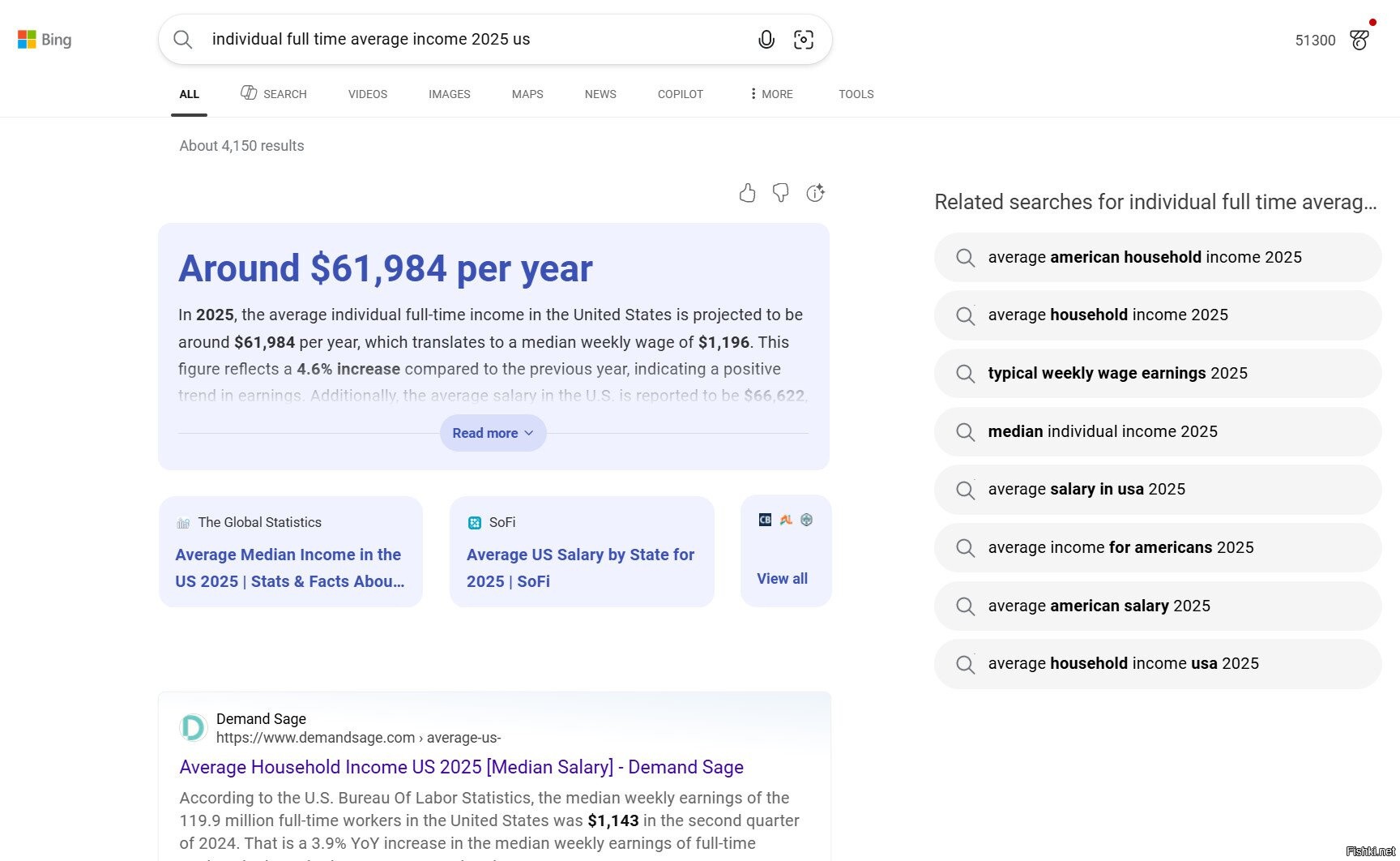 А про индивидуальный доход, вот ответ по поиску "individual full time average income 2025 us".