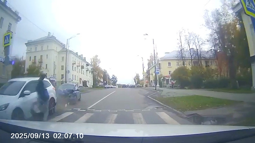 В Новоуральске синий хетчбэк столкнулся с притормозившим у пешеходного перехода автомобилем "Форд" и отбросил его на пешехода. Пишут, что женщина отделалась ушибами. Синий автомобиль после ДТП загорелся, но его успели потушить.