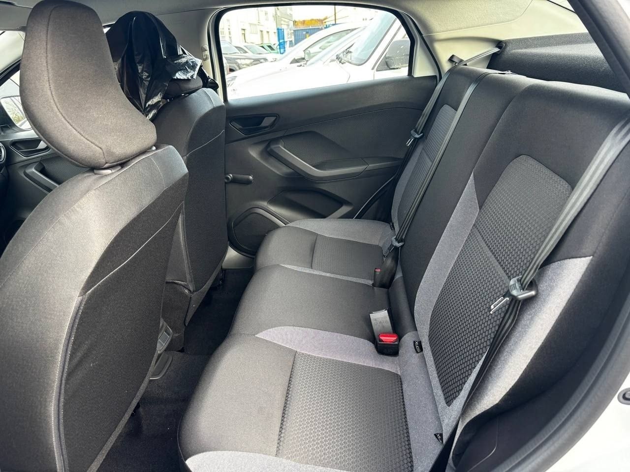 Как видно, машина в белом цвете на штампованных колесных дисках. Корпуса зеркала и ручки дверей не окрашены в цвет, а вот «плавник» антенны — в цвете кузова. В салоне все очень просто: сзади нет ни подголовников, ни подлокотника, ни электрических стеклоподъемников. Аудиосистемы и кондиционера нет.