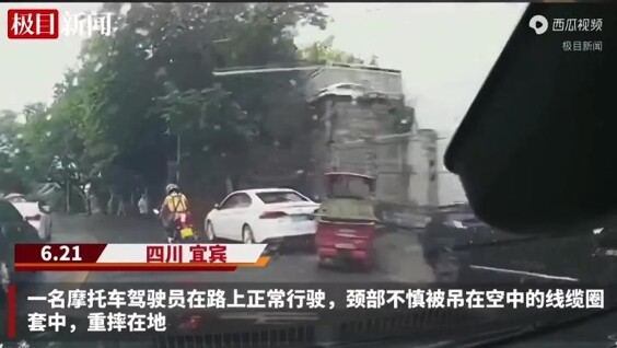 Мотоциклист попал в смертельно опасную "ловушку". Удивительно, но он остался жив. Китай.