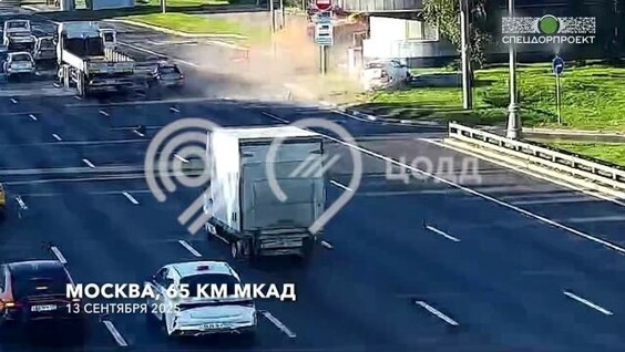 - Жёсткое столкновение со стоящими автомобилями и людьми на МКАДе