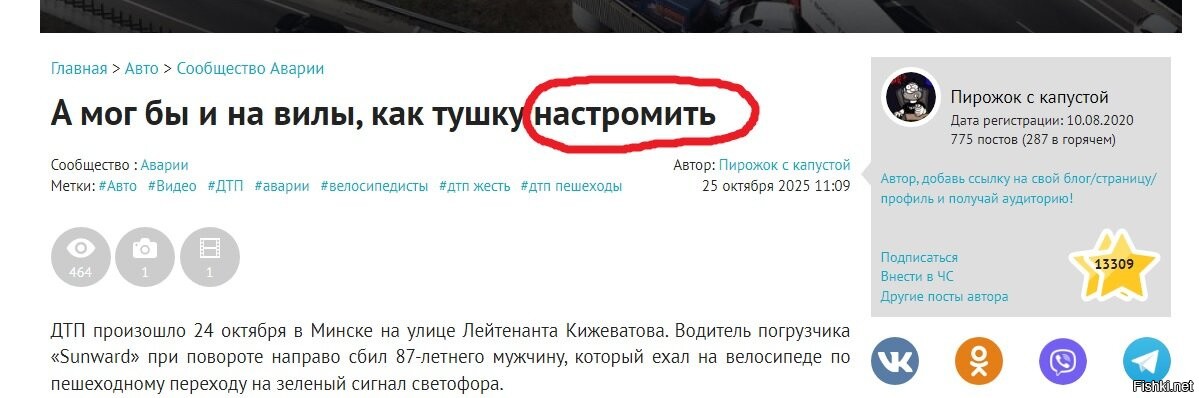 длиннющий переход, во что там залипал водитель погрузчика - хер знает, но деда именно он чуть не убил.