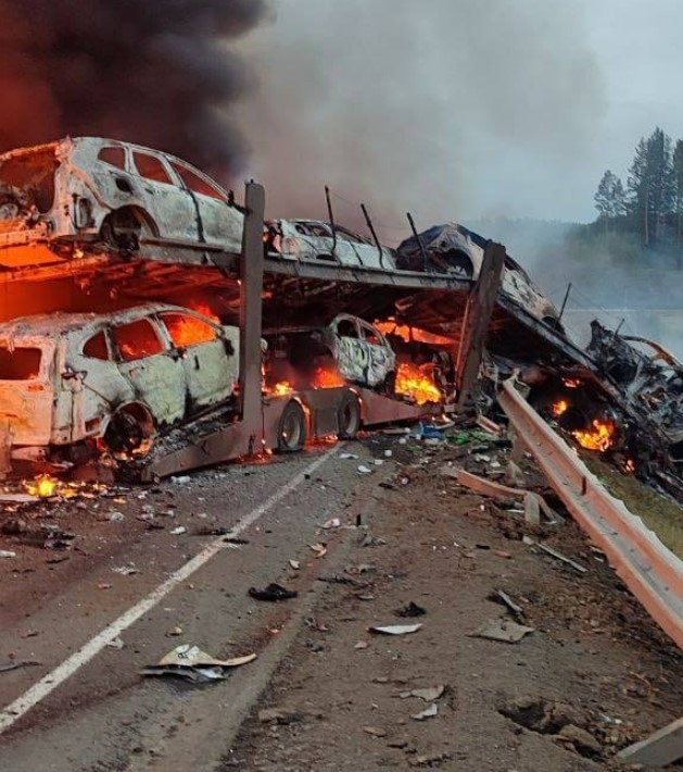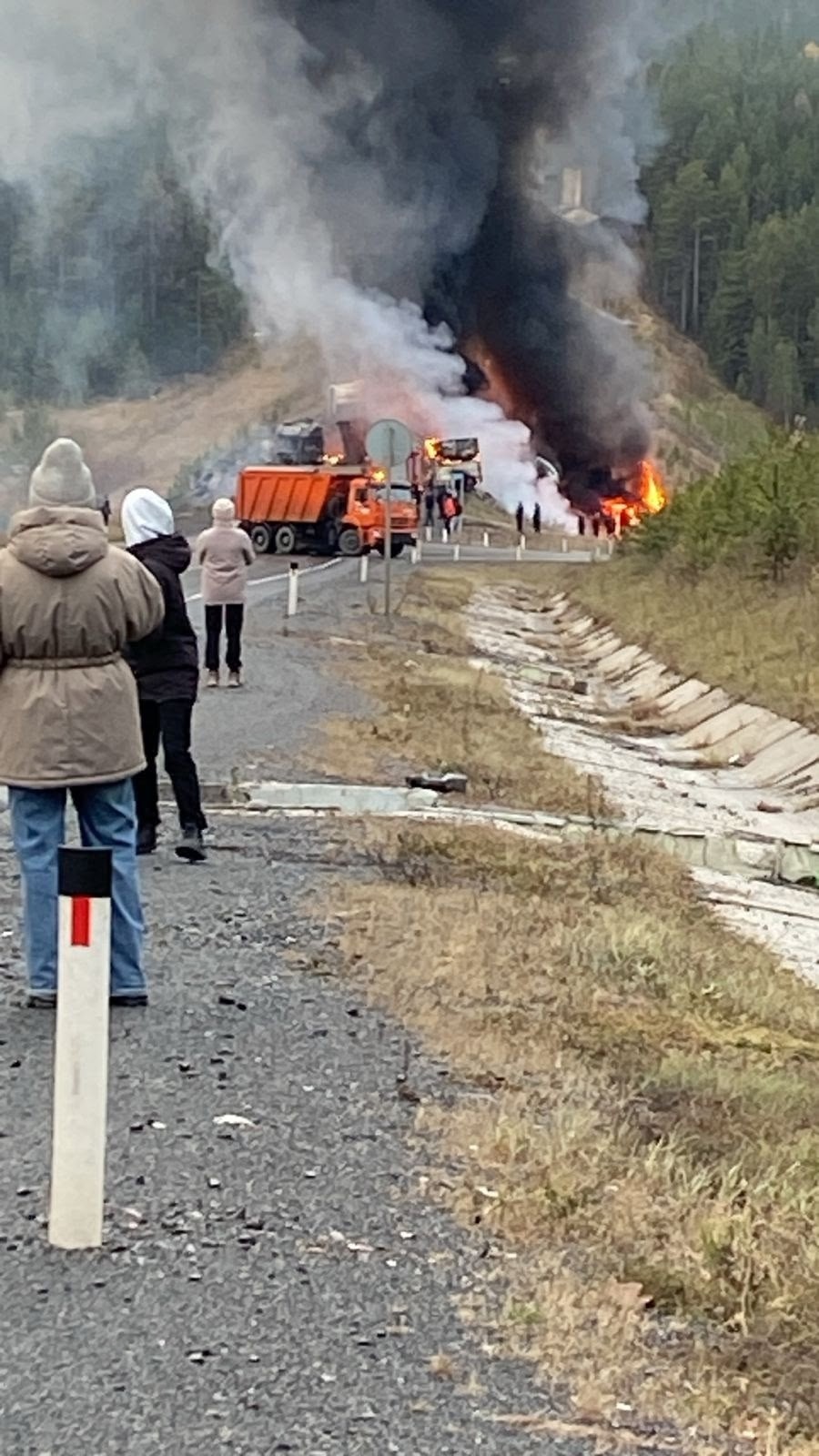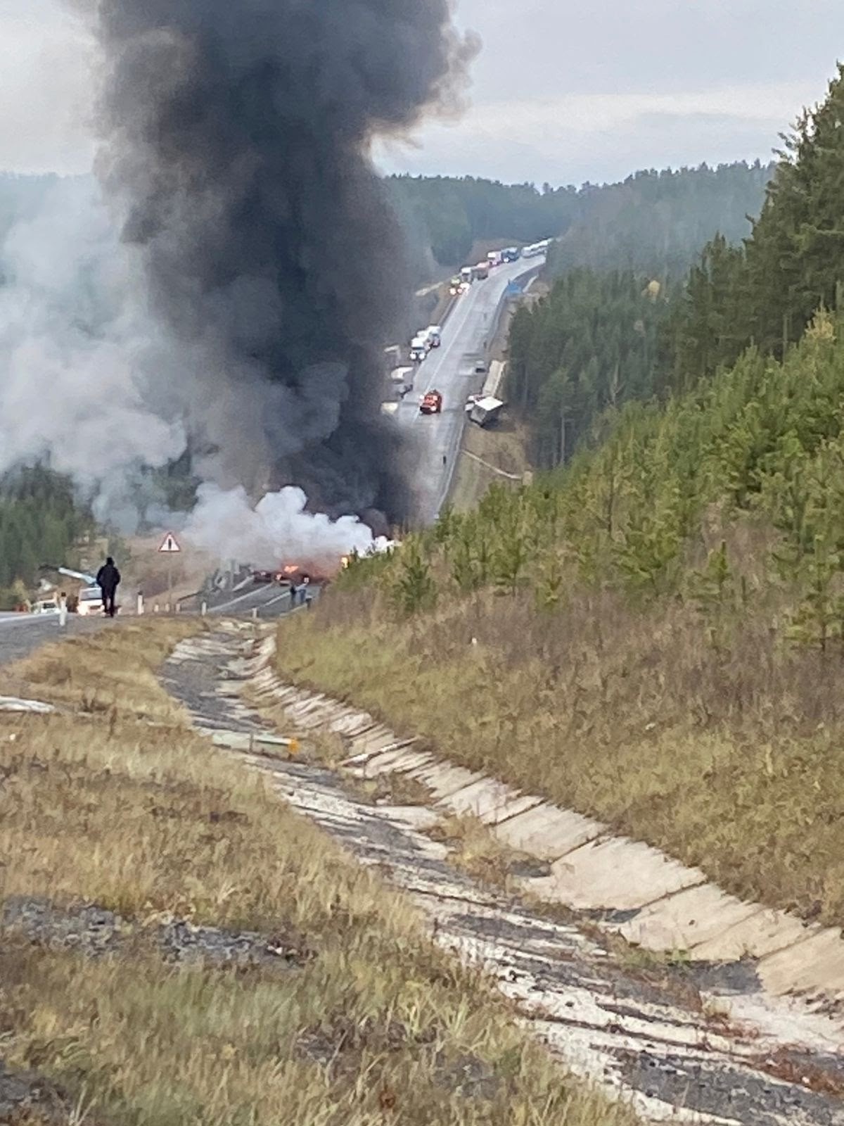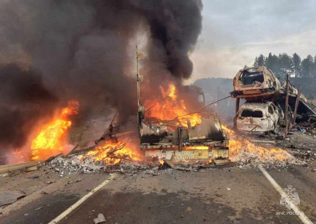 Массовое ДТП произошло сегодня в 8 утра на 1325 километре трассы «Сибирь» возле поселка Камышет в Иркутской области. Столкнулись 7 грузовых и один легковой автомобиль. Пять автомобилей полностью сгорели, в том числе внедорожники Toyota Land Cruiser, которые находились на автовозе. Водитель автовоза погиб. Троим пострадавшим понадобилась медицинская помощь. По предварительной информации, причиной массовой аварии стал гололед.