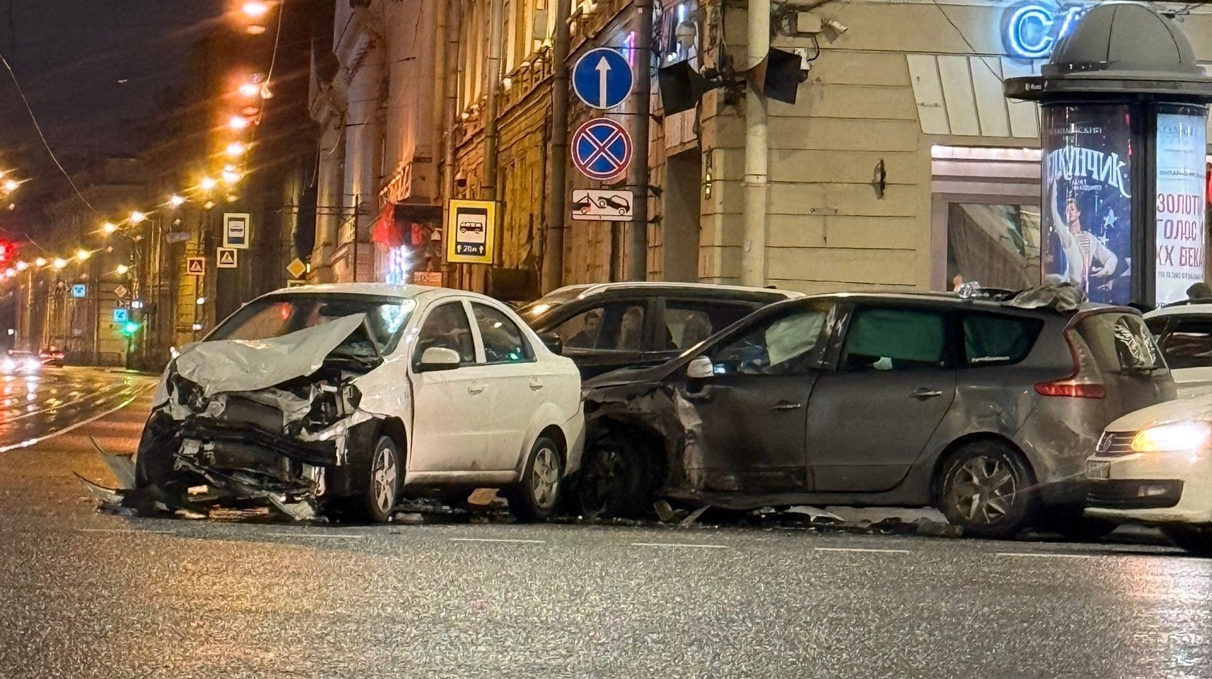 В прошлой раз отличился "властелин колец", а в этот раз проскочить перекрёсток Невского проспекта и улицы Садовой на красный сигнал светофора решил водитель автомобиля "Рено Сценик". Никто не пострадал.